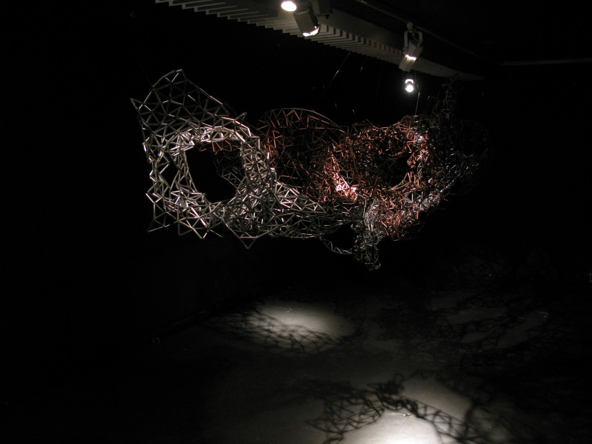 Sculptural installation with 5:1 surround sound In Desolati Pisces, an ancient fish trap echoes technological utopian inventions that defy...